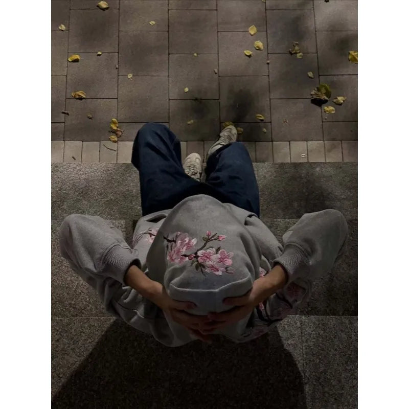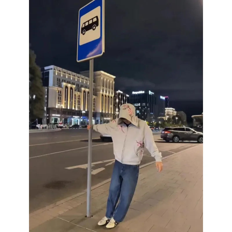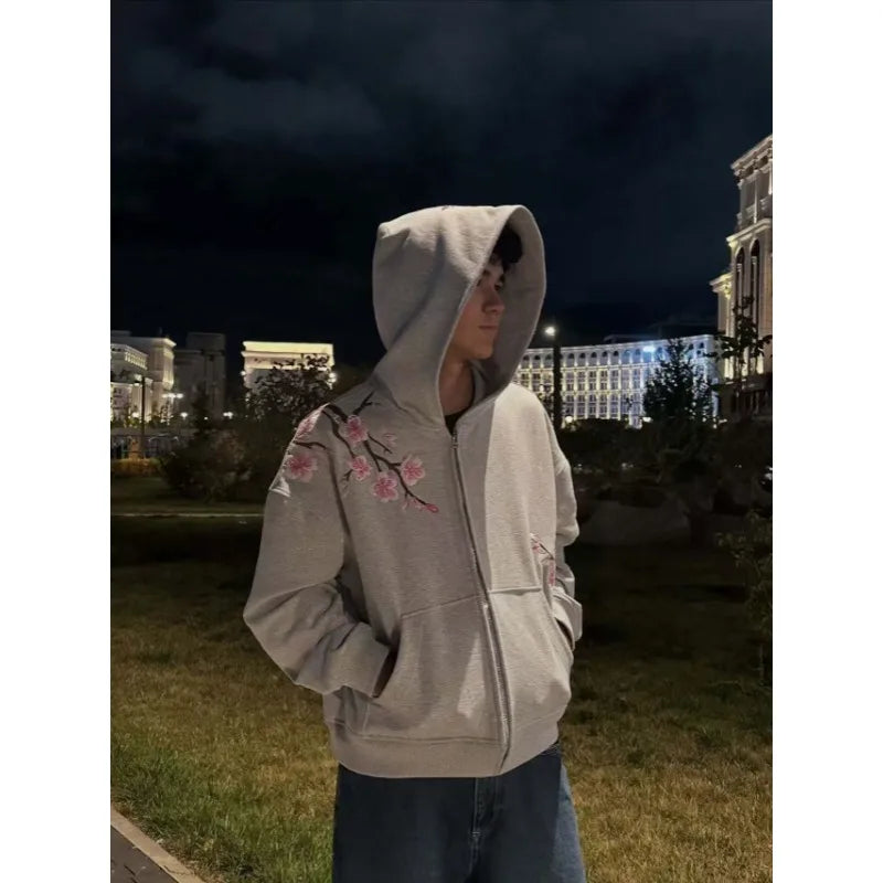 Harajuku aesthetic flower embroidery oversized zip up hoodies for women y2k winter clothes women warm long-sleeved sweatshirts